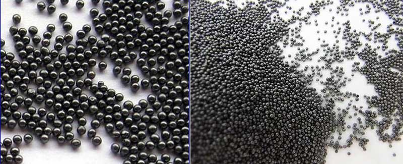 鑄鋼丸是由高質(zhì)量的鋼碎料制成的,首先將其溶化,然后用高壓水噴射式使熔融的鋼水形成小球狀。形成的丸體再次加熱以凈化勻質(zhì),然后進行淬火處理。淬火后的丸體在熔爐內(nèi)進行烘干并重新加熱回火以達到適當?shù)挠捕?,回火處理的鋼丸通過機械篩網(wǎng)被分選成符合SAE標準的11個等級以用于拋丸設備。不同粒度和硬度的產(chǎn)品用于不同的工藝,如表面強化等。